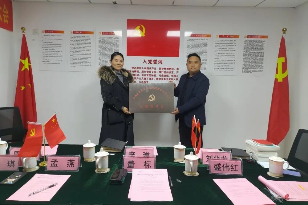 隨后,紅楓社區黨支部書記李琳同志向安徽鐵谷信息科技股份有限公司黨支部進行授牌并贈送黨報書刊。