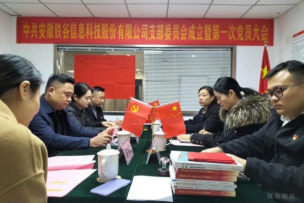 2021年12月14日上午,安徽鐵谷信息科技股份有限公司黨支部成立暨第一次黨員大會順利召開,中共安徽鐵谷信息科技股份有限公司支部委員會是合肥高新區興園中心紅楓社區首家新組建非公企業黨組織。