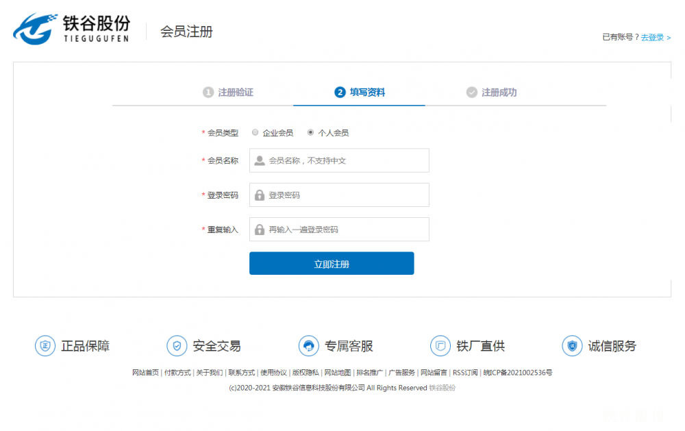 第三步:設置會員名稱、登錄密碼,點擊立即注冊完成注冊