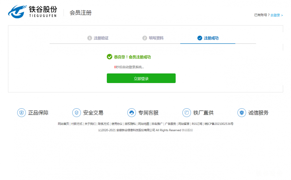 顯示注冊成功即為完成注冊