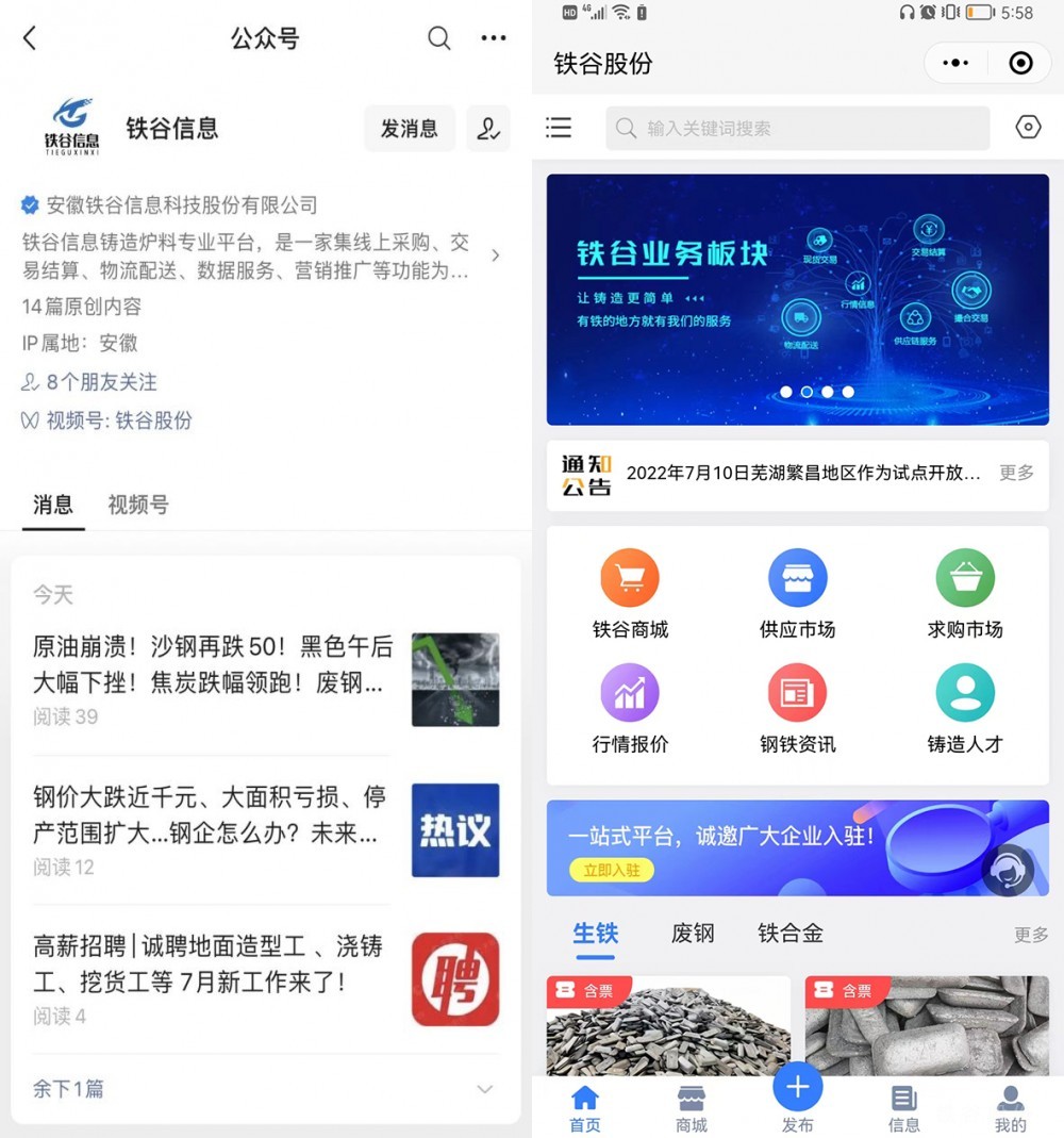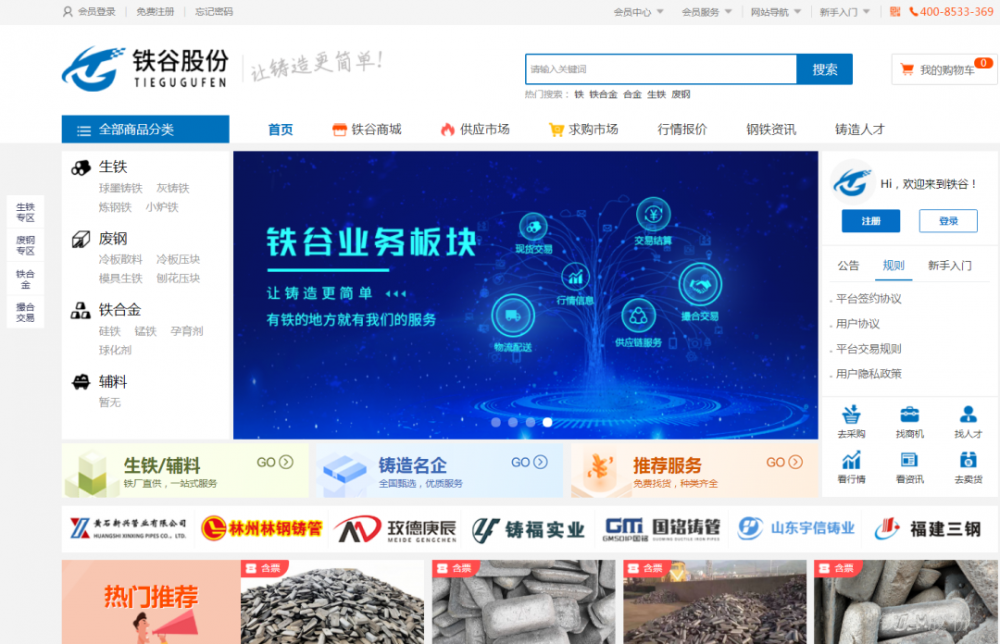 安徽鐵谷信息科技股份有限公司業(yè)務(wù)覆蓋鑄造原輔料貿(mào)易、計(jì)算機(jī)軟硬件開發(fā)、互聯(lián)網(wǎng)信息服務(wù)等多項(xiàng)領(lǐng)域。公司整合優(yōu)質(zhì)上、下游客戶資源,融合互聯(lián)網(wǎng)+模式,采用線上、線下相結(jié)合經(jīng)營模式,突破傳統(tǒng)鑄造行業(yè)資訊信息分散、延時(shí),成單交易、物流配送、技術(shù)服務(wù)無統(tǒng)一服務(wù)平臺(tái)等痛點(diǎn),自主研發(fā)“鐵谷云商服務(wù)平臺(tái)”(以下簡稱“平臺(tái)”),致力打造集線上供應(yīng)鏈管理、SaaS應(yīng)用、行業(yè)資訊發(fā)布、技術(shù)服務(wù)等多功能為一體的鑄造行業(yè)智慧服務(wù)平臺(tái),助力鑄造行業(yè)綠色智能轉(zhuǎn)型升級。