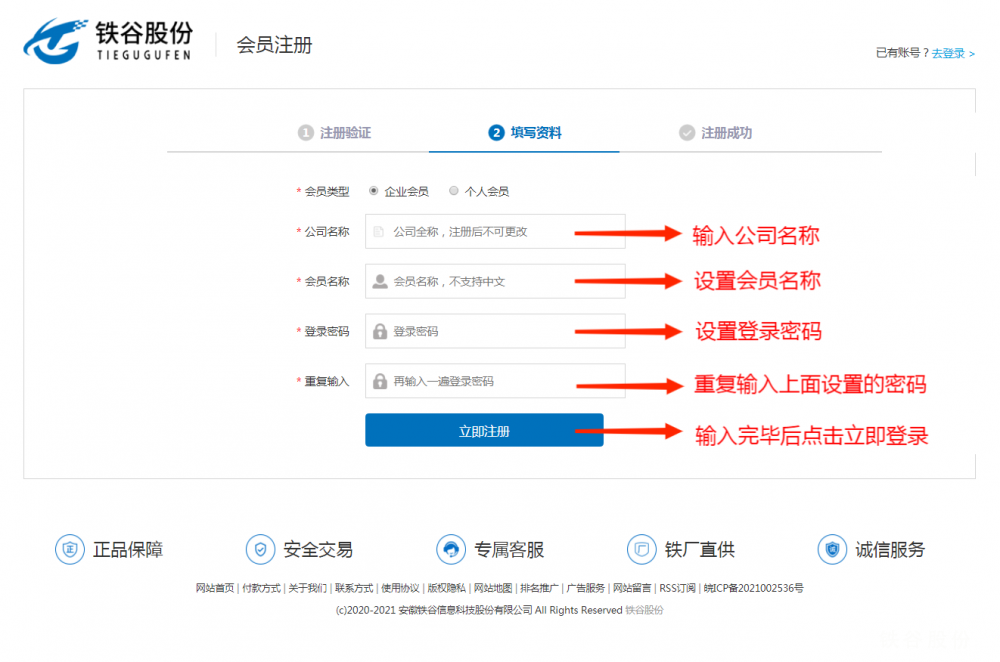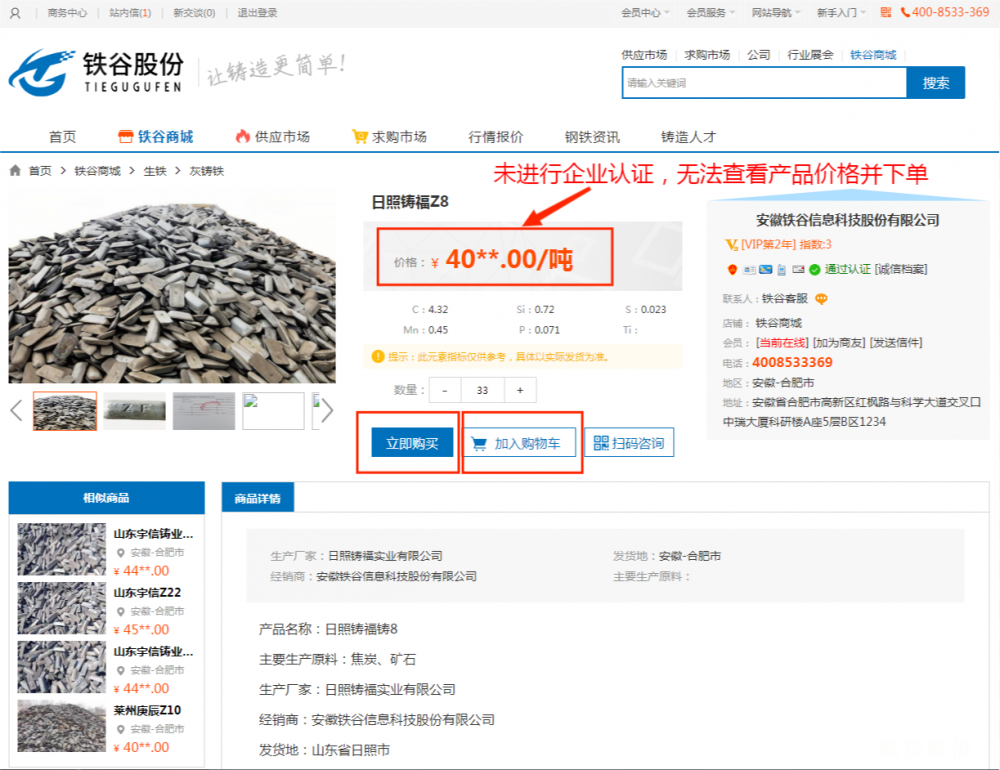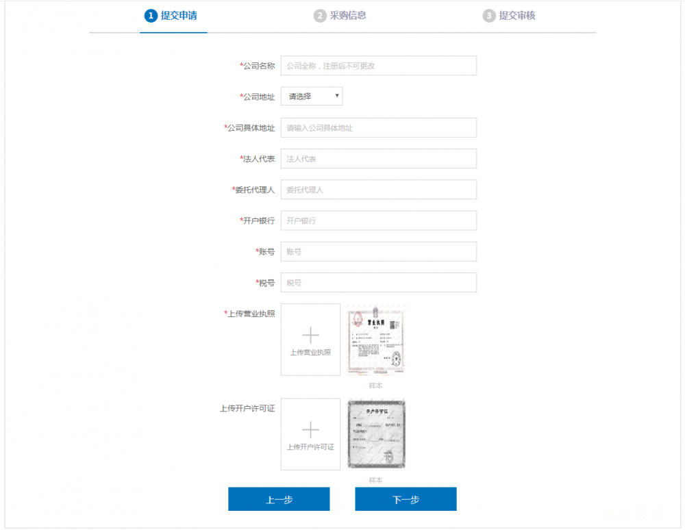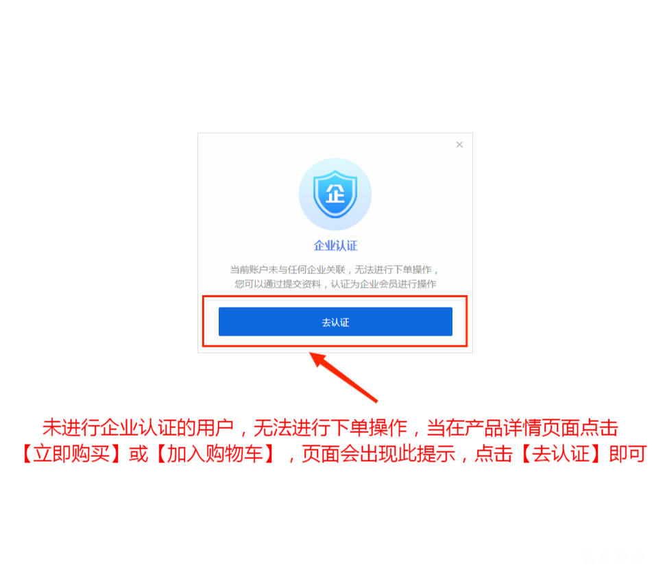 二、提交資料進行企業認證(未進行企業認證的賬戶,無法查看產品價格進行下單操作)
