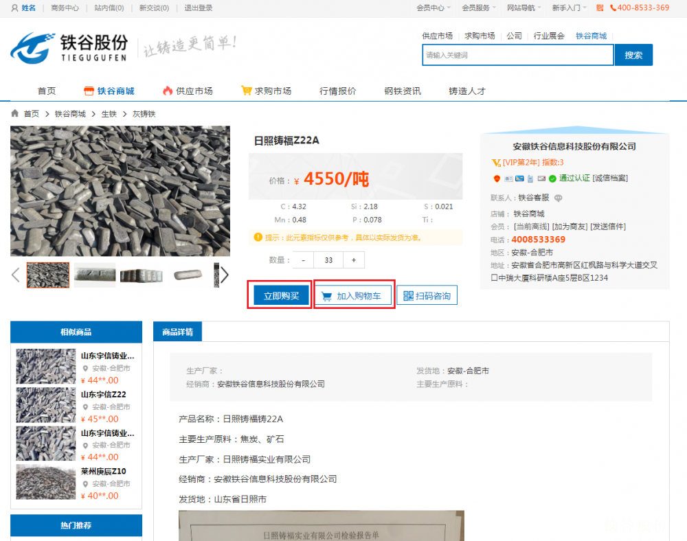 3、填寫需要購買的數量,點擊加入購物車或立即購買。