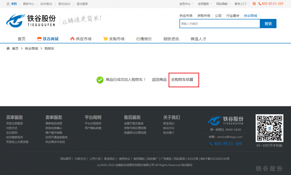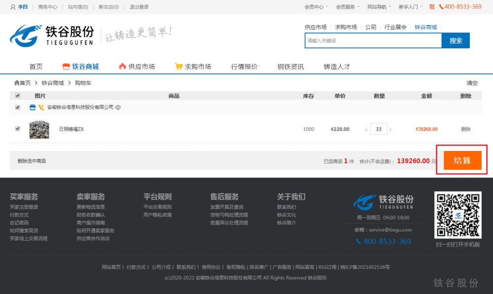 4、點擊加入購物車,進入購物車頁面,確認好購買數量價格直接點擊去結算。