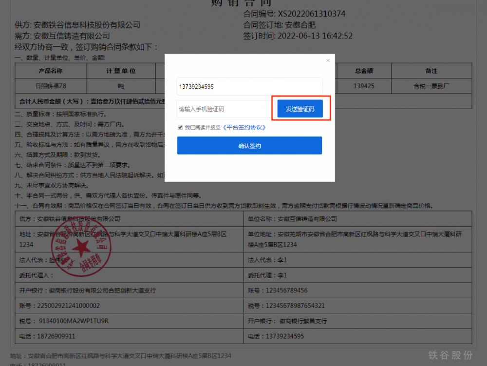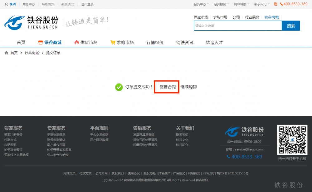 6、提交訂單后,選擇【簽署合同】進入簽署合同流程,查看合同內容無誤后,可選擇【簽約合同】進行簽約。