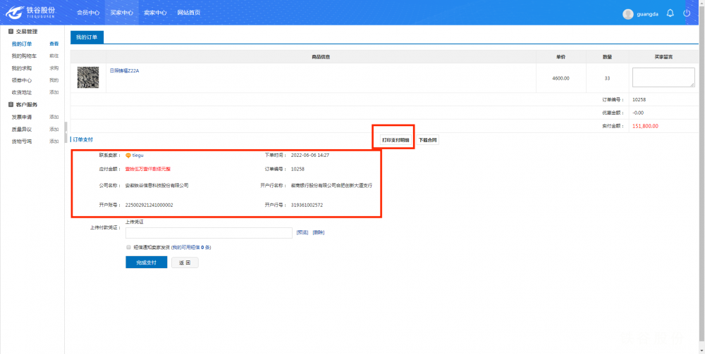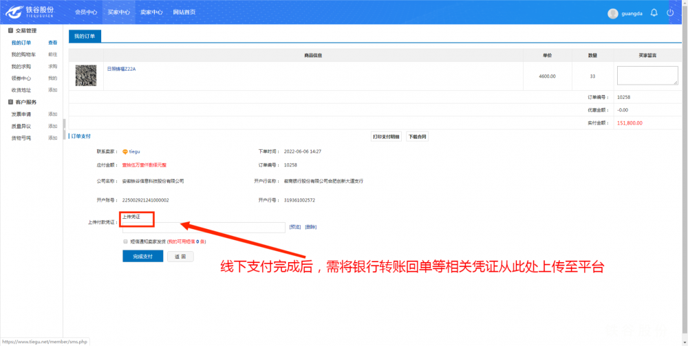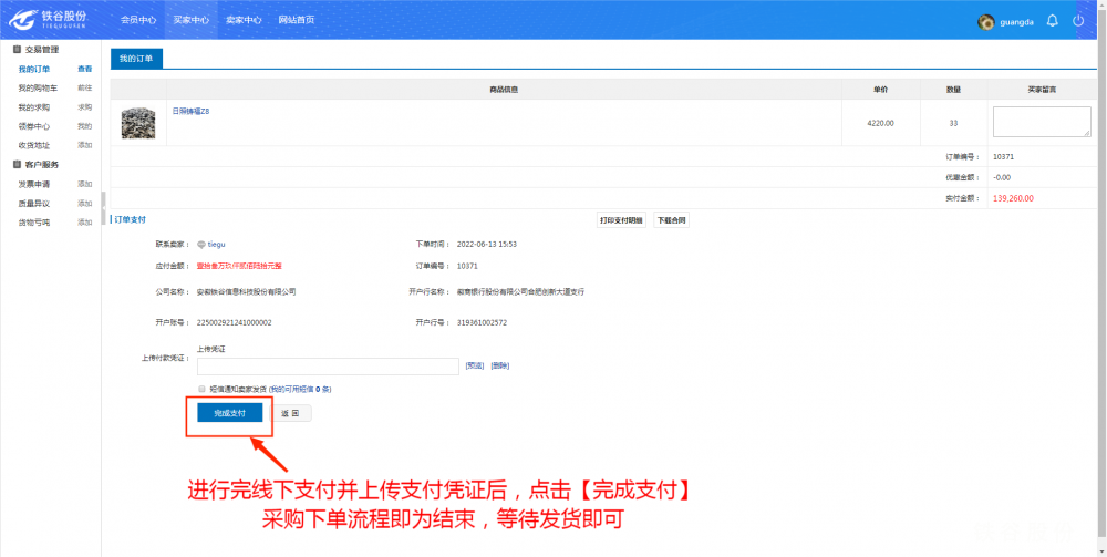 8、支付結算完成后,買家需上傳支付憑證(如銀行轉賬回單等),并確認完成支付。