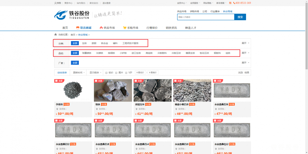 方法一:登錄狀態下,進入【鐵谷商城】,按照商品分類選擇篩選項。