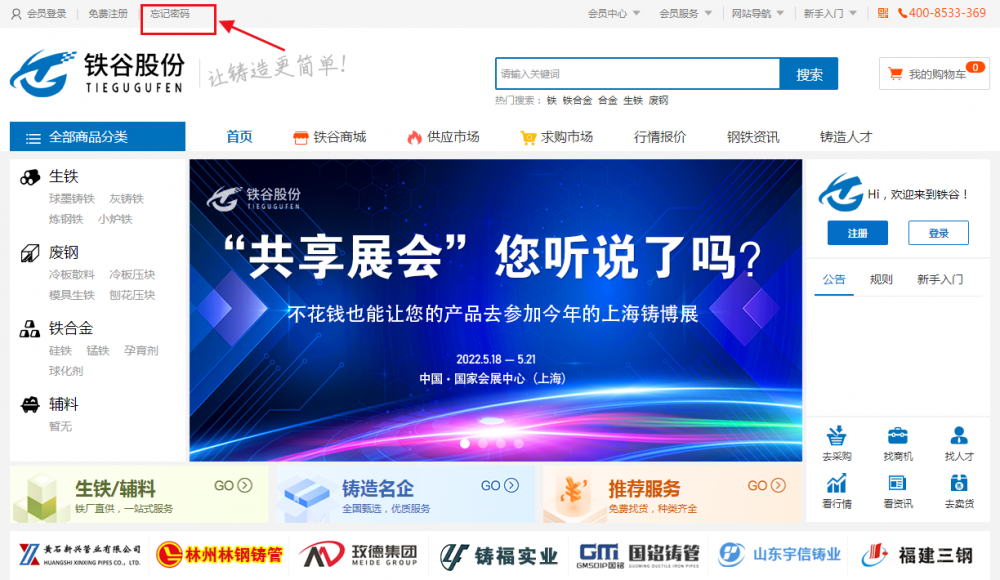 1、首頁選擇【登錄】,進(jìn)入登錄頁面選擇【忘記密碼】,或是直接選擇首頁左上方【忘記密碼】。