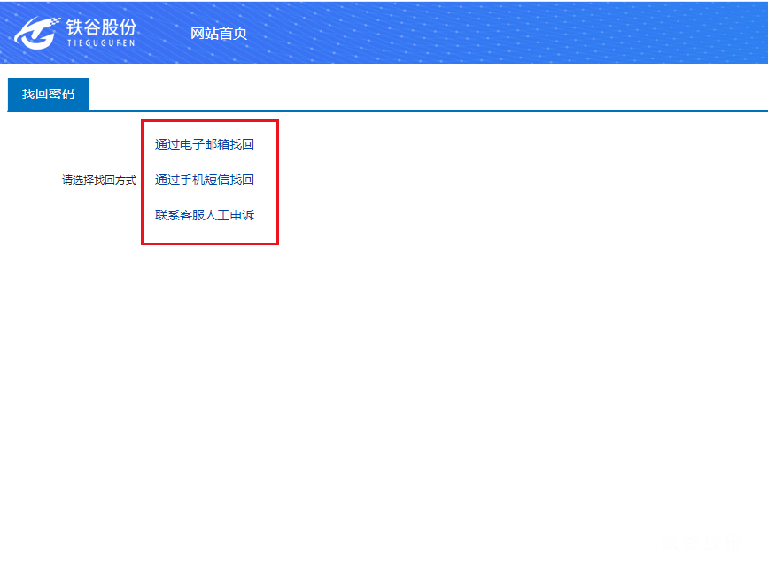 2、找回密碼的方式有三種,任選一種進(jìn)行操作。