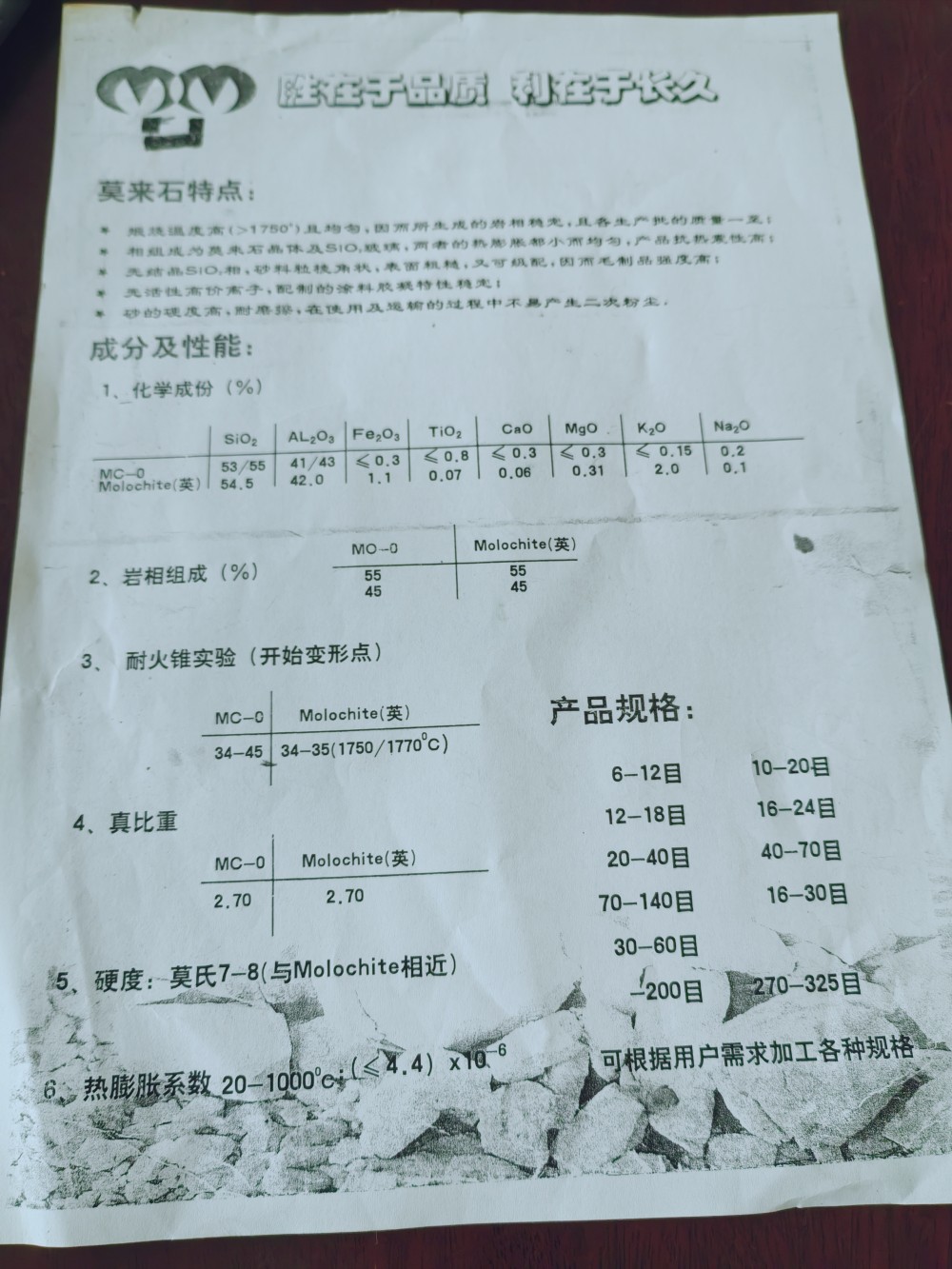 新品種莫來砂 鋁含量更高,鐵含量更低,粉塵更小