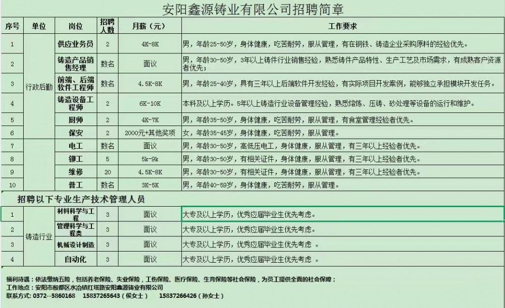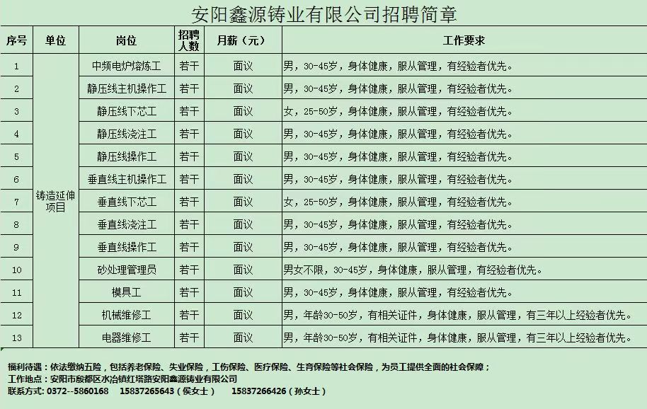 工作地點:安陽市殷都區水冶鎮紅塔路安陽鑫源鑄業有限公司