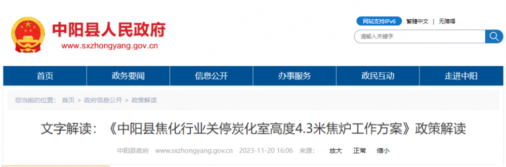 2023年11月20日,中陽縣人民政府發(fā)布《中陽縣焦化行業(yè)關停炭化室高度4.3米焦爐工作方案》政策解讀,具體內容如下: