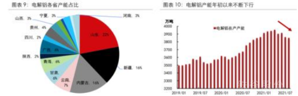 而回顧今年2月份以及6月份發改委公布能耗雙控結果后有色金屬以及其他工業品的走勢,發現大部分工業品還是傾向于上漲。總體而言,能耗雙控會對部分工業品供給端產生壓制,將有助于于其價格上漲。但在實際情況當中,品種由于各自的基本面不同在價格上走勢也會分化。如對于鋁鋅本身就受限電限產壓制的品種,能耗雙控無疑是火上澆油,影響幅度將會更大。我們重點對受影響較大的電解鋁、鐵合金進行分析。
