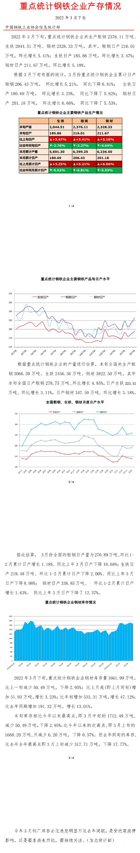 2022年3月下旬重點統計鋼鐵企業產存情況