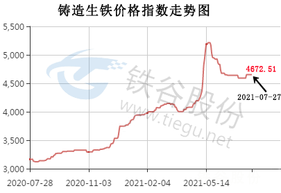 28日全國鑄造生鐵報價相對平穩,臨汾4680、武安4730、臨沂4780、萊州4630常州4780、林州4900、遼陽4650、貴陽4900、新疆阜康4100,結合昨日鑄造生鐵價格指數來看近日國內生鐵市場熱度不高,目前各地鋼廠不同程度限產,煉鋼生鐵需求不溫不火,市場整體成交情況也不太理想。據鐵谷數據分析,受臺風、暴雨、洪水等環境因素影響,下游需求一般,但由于生鐵成本高位,且各地區處于停產狀態的鐵廠不在少數,生鐵市場供應壓力不大,鐵廠庫存尚可,少數鐵廠甚至資源偏緊,報價多維穩,個別鐵廠報價區間波動不大。綜合考慮,在成本與需求的互相博弈下,預計7月29日國內生鐵市場繼續維穩運行。