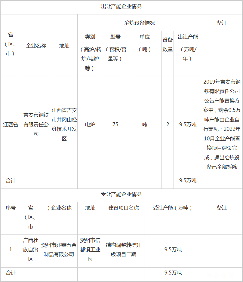 按照《國務院關于化解產能嚴重過剩矛盾的指導意見》、《國務院關于鋼鐵行業化解過剩產能實現脫困發展的意見》和《鋼鐵行業產能置換實施辦法》要求,現將吉安市鋼鐵有限責任公司產能出讓情況予以公告,歡迎社會公眾進行監督。